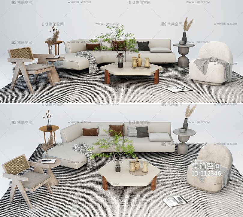 03-奶油中古沙发组合_沙发茶几组合_异形沙发_金属茶几_单人休闲椅_模块沙发3D模型3d模型下载