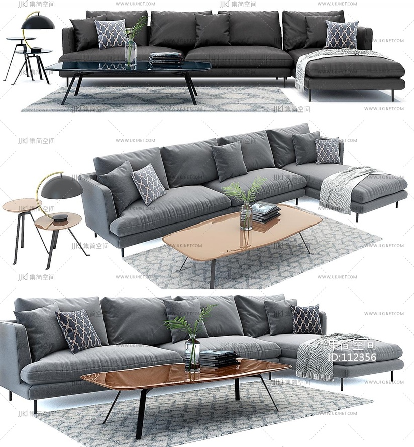 现代布艺转角沙发茶几组合 3d模型下载 [模型ID:112356]