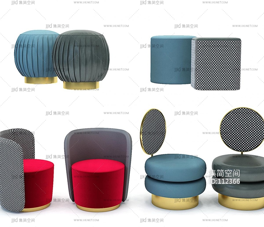 现代轻奢圆形沙发凳化妆凳,圆凳,圆墩坐凳 3d模型下载 [模型ID:112366]