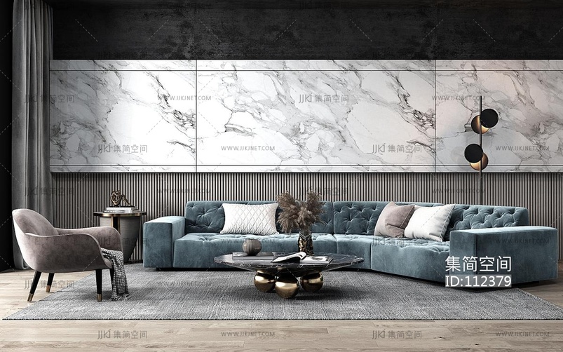 现代皮革转角,弧形沙发茶几组合 3d模型下载 [模型ID:112379]