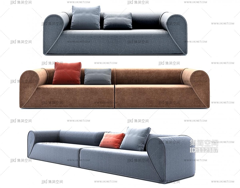 现代沙发三人沙发拼接沙发3D模型3d模型下载