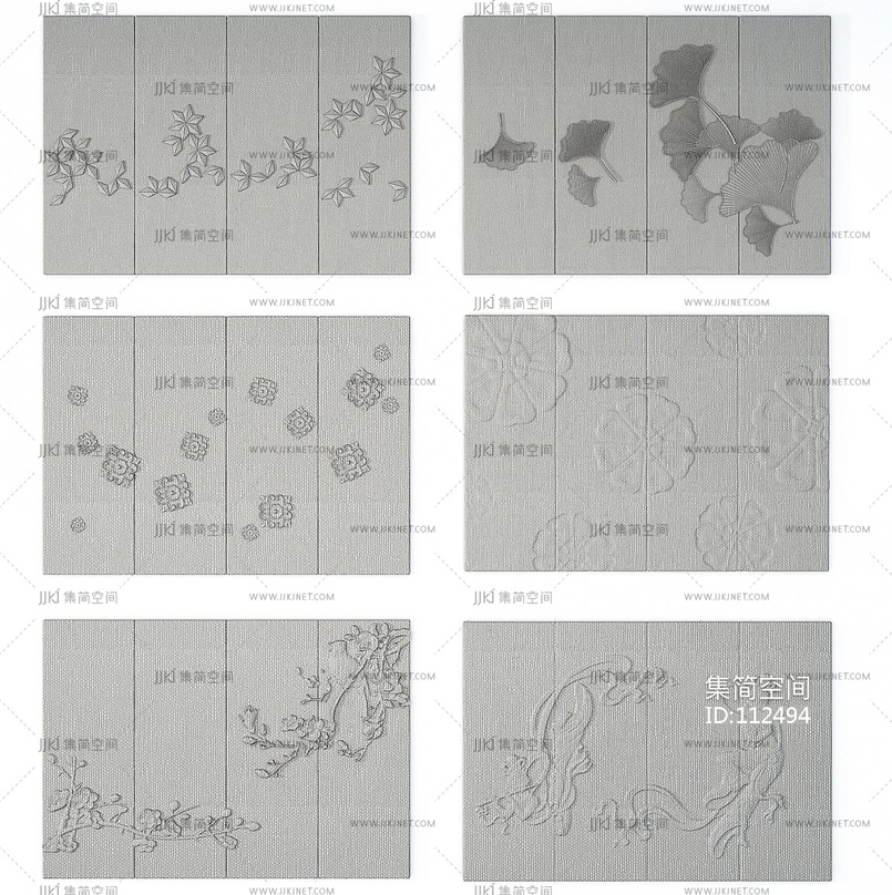 新中式梅花银杏叶布艺软包硬包,皮革背景 3d模型下载 [模型ID:112494]