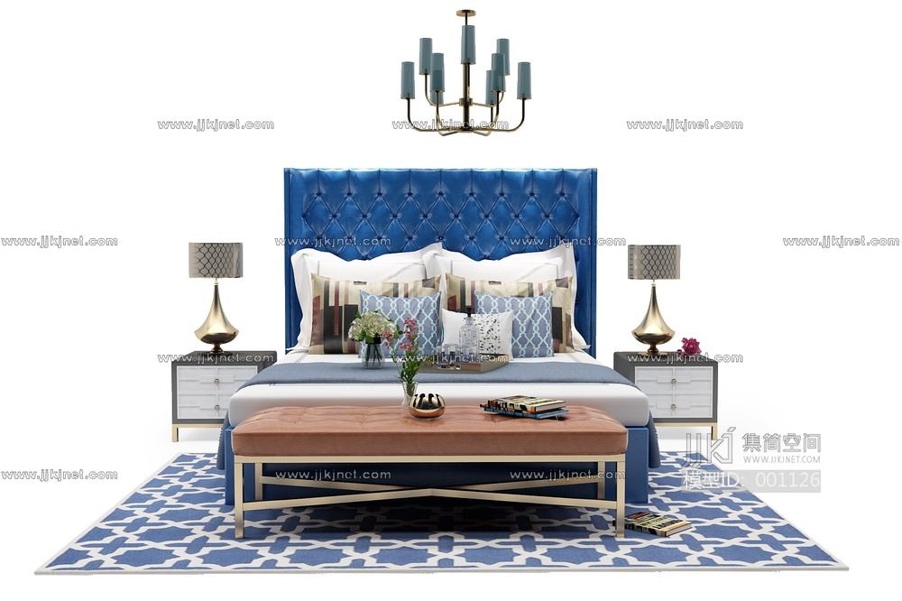 13-现代轻奢双人床_布艺_皮质_轻奢双人床集合3D模型3d模型下载