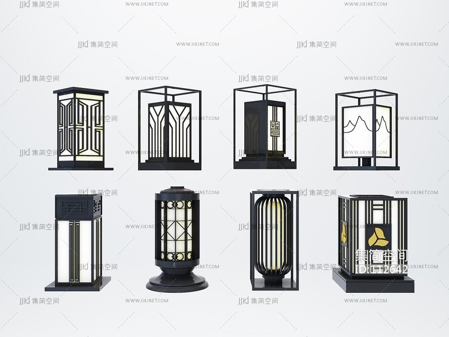 新中式铁艺草坪灯,落地灯景观灯 3d模型下载 [模型ID:112642]