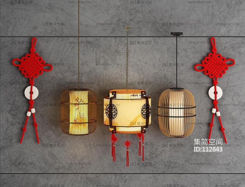 中式古典吊灯灯笼宫灯、中国结 3d模型下载 [模型ID:112643]