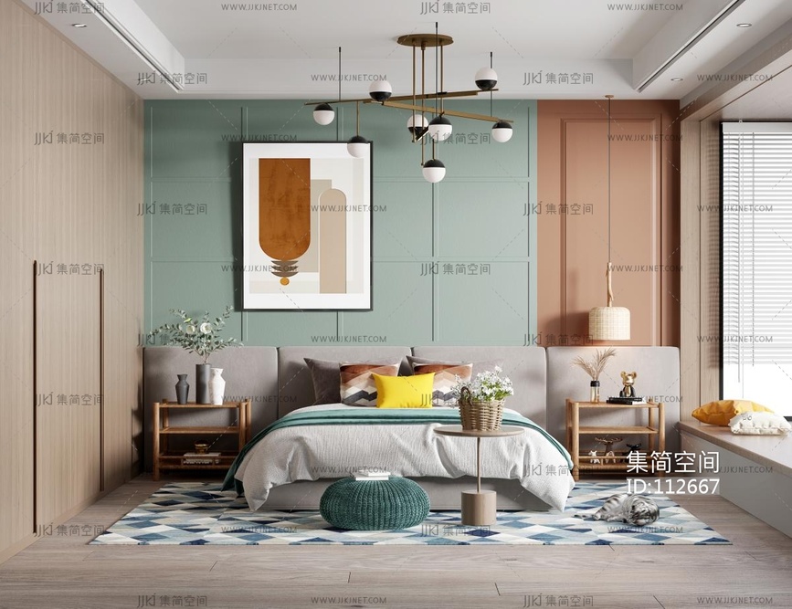 卧室,轻奢,暗黑风,现代轻奢卧室双人床,懒人沙发法式卧室3d模型下载