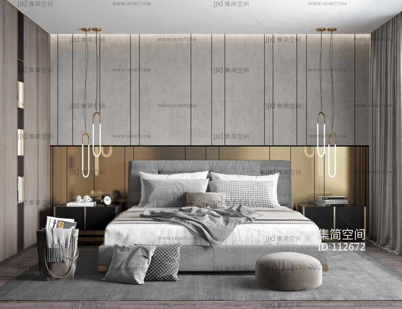 现代轻奢卧室 3d模型下载 [模型ID:112672]