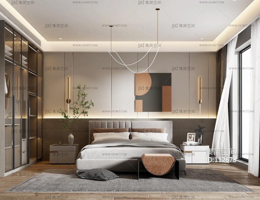 卧室,轻奢,暗黑风,现代轻奢卧室双人床,懒人沙发法式卧室3d模型下载