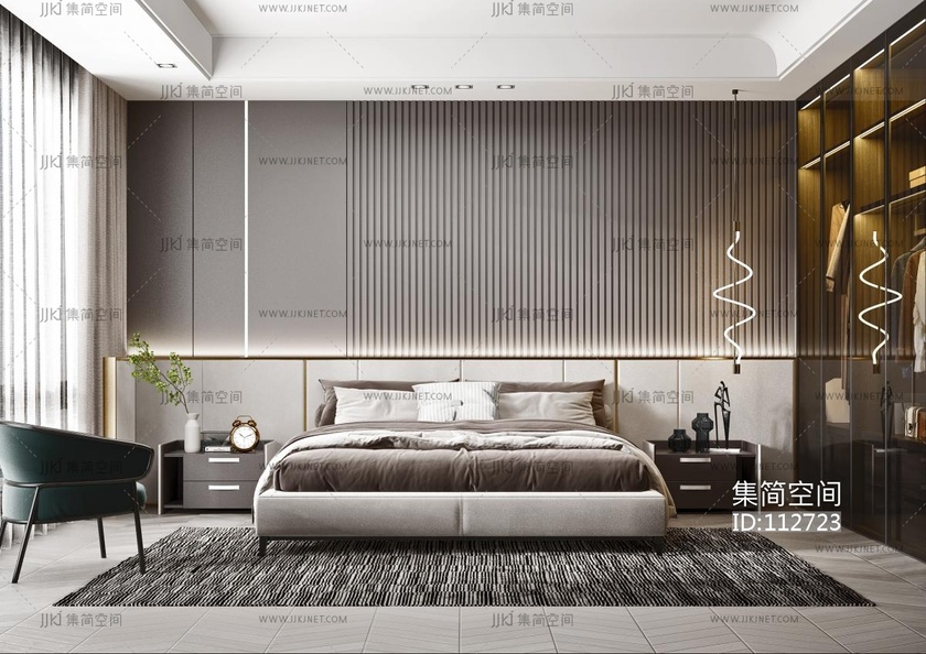 现代高级灰卧室 3d模型下载 [模型ID:112723]