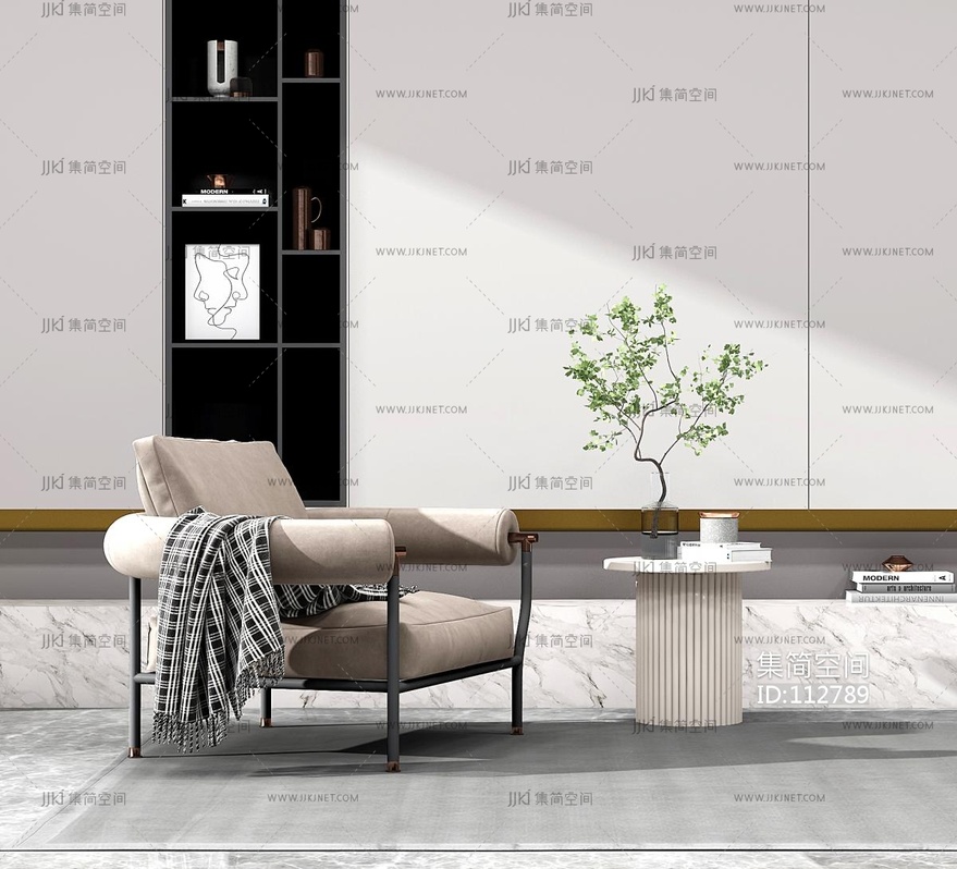 现代休闲椅,单椅边几组合, 3d模型下载 [模型ID:112789]