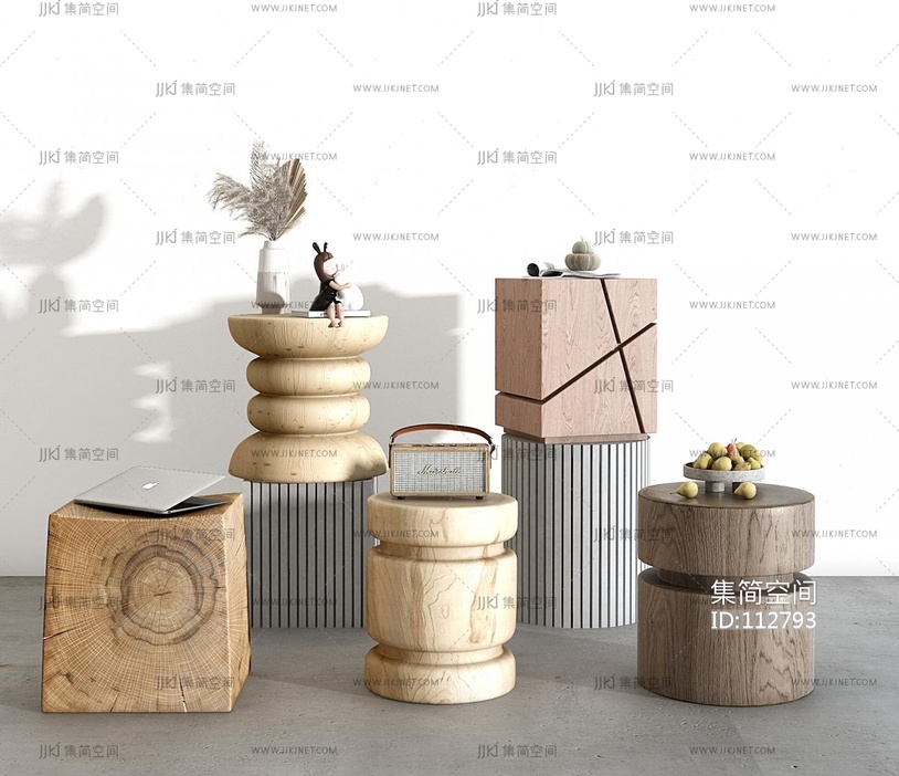 北欧实木凳子,木凳木墩子圆墩组合 3d模型下载 [模型ID:112793]