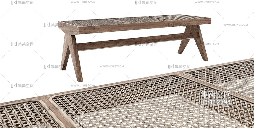 北欧藤编编织,长条凳换鞋凳 3d模型下载 [模型ID:112794]