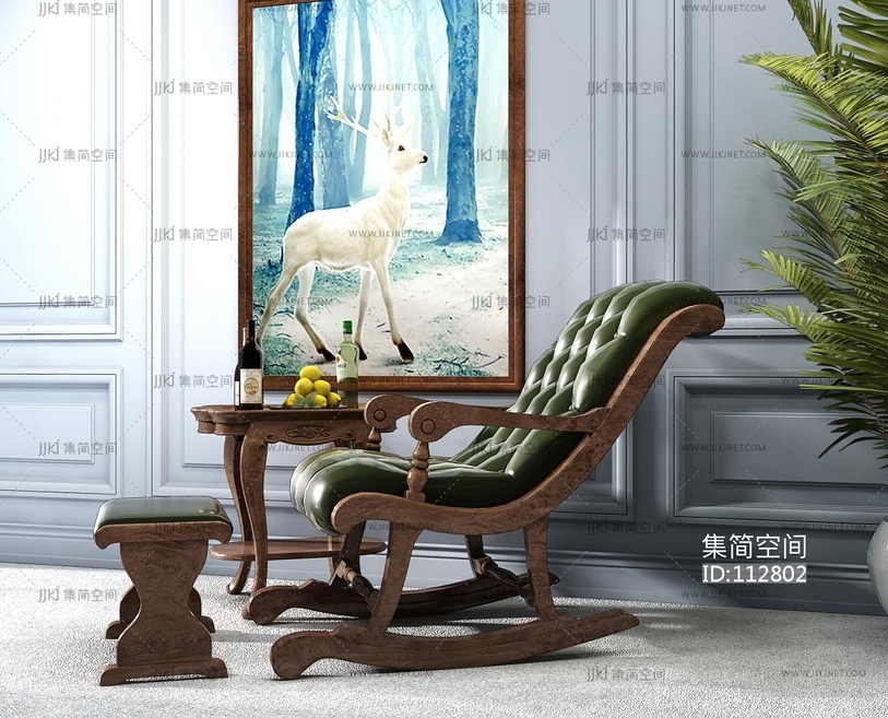 美式古典摇椅边几组合 3d模型下载 [模型ID:112802]
