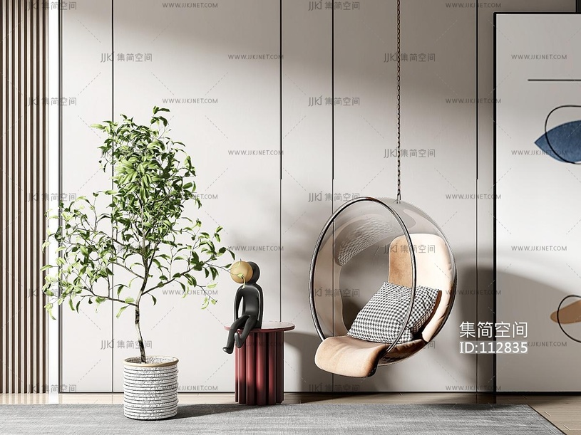 现代玻璃吊椅,边几,盆栽 3d模型下载 [模型ID:112835]