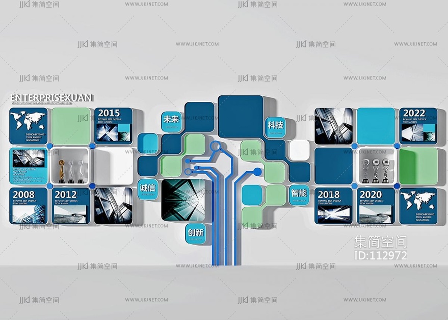 现代企业文化墙,宣传墙,宣传报栏 3d模型下载 [模型ID:112972]