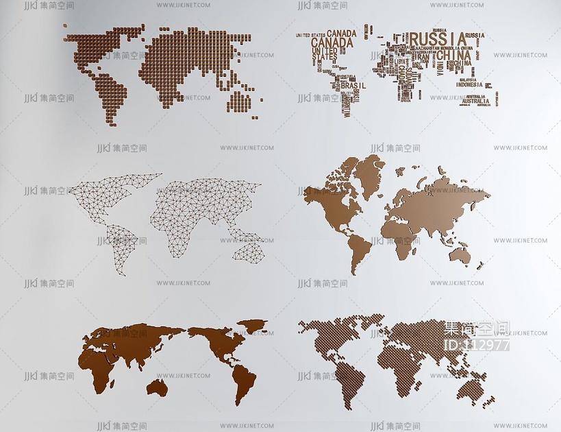 现代世界地图墙饰, 3d模型下载 [模型ID:112977]