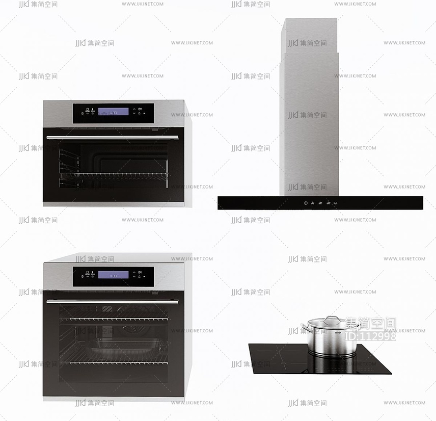 现代烤箱,油烟机,厨房电器 ,不锈钢锅(1) 3d模型下载 [模型ID:112998]