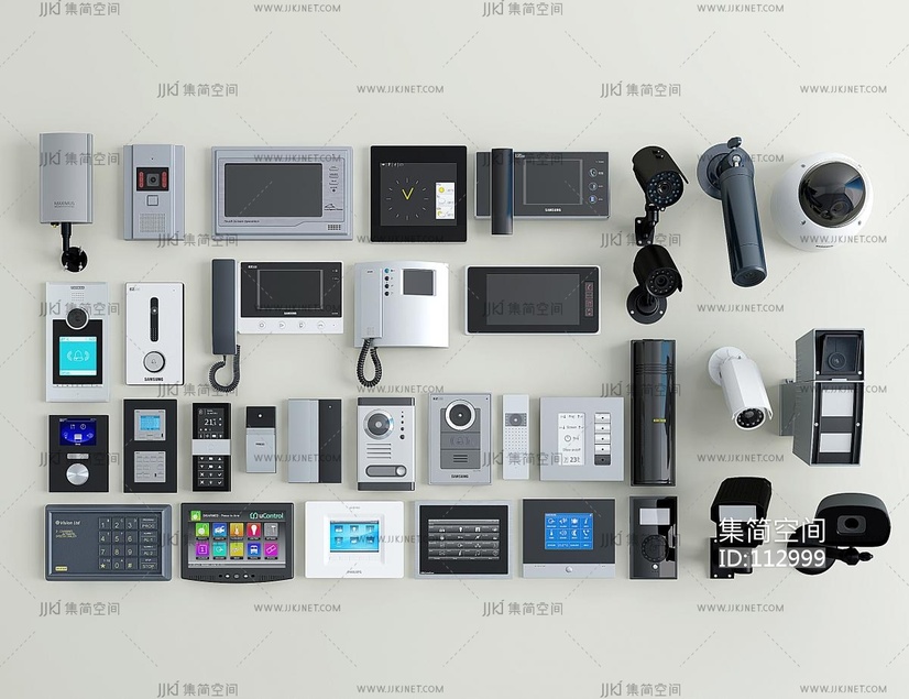 现代可视对讲门铃,电视电话,监控摄像头 (2) 3d模型下载 [模型ID:112999]