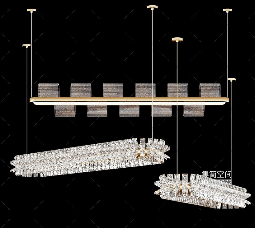 现代长条条形,水晶吊灯 3d模型下载 [模型ID:113072]