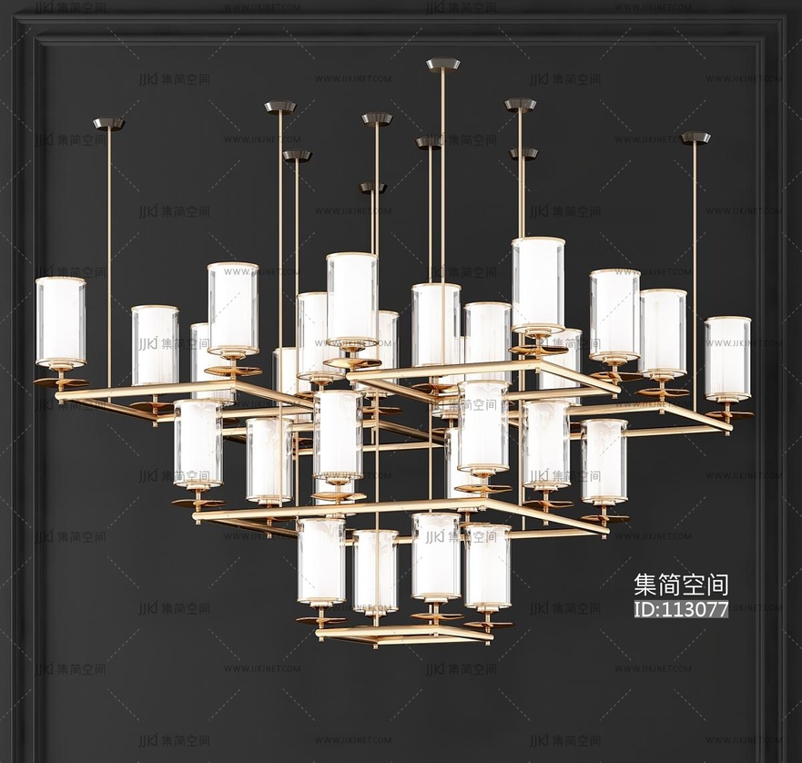 新中式灯罩吊灯 3d模型下载 [模型ID:113077]