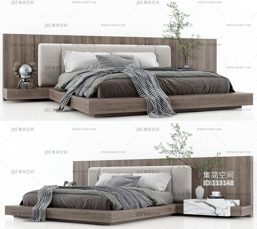 现代双人床,床具 (1) 3d模型下载 [模型ID:113148]