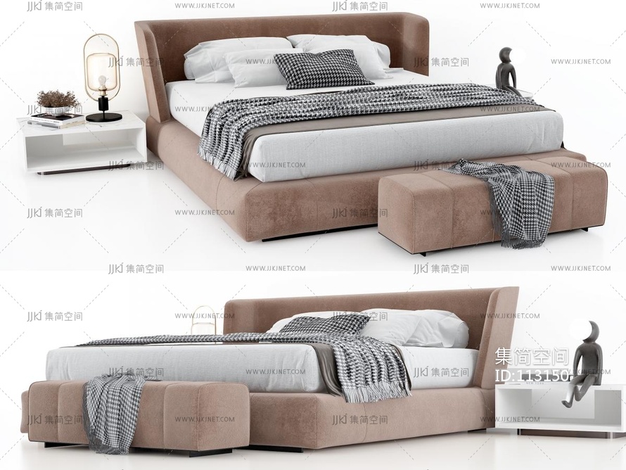 05-Baxter现代双人床现代双人床3D模型vrrr3d模型下载