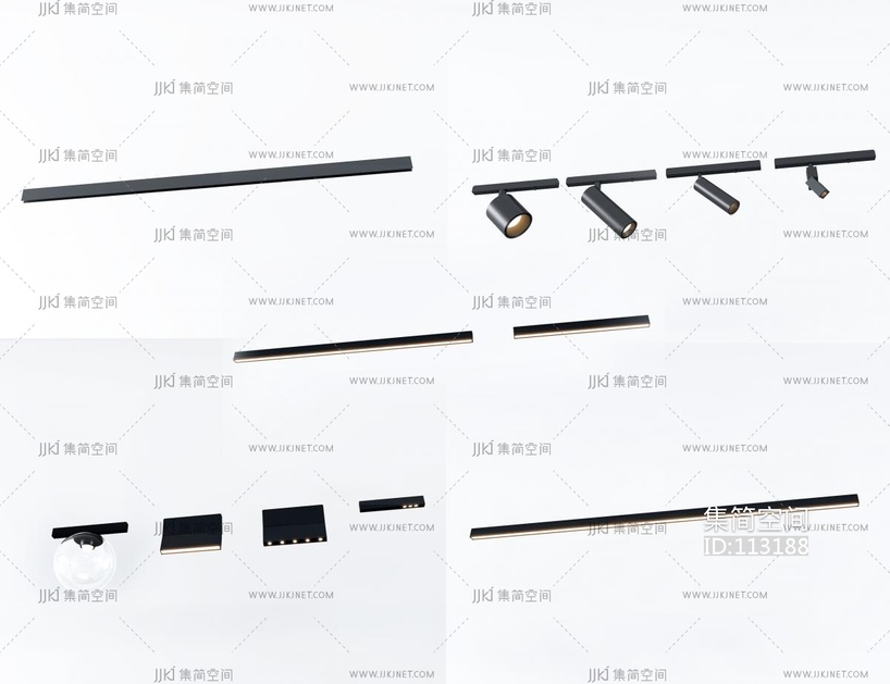 现代磁吸灯,轨道灯,筒灯组合 3d模型下载 [模型ID:113188]