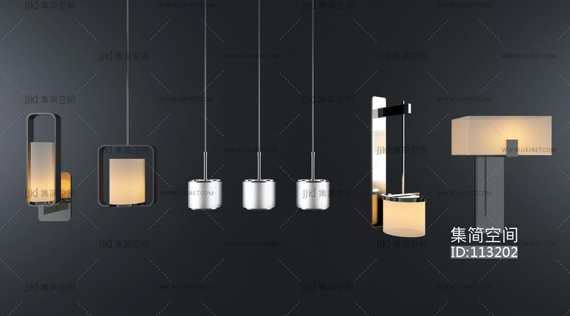 新中式灯具组合,吊灯,壁灯 (1) 3d模型下载 [模型ID:113202]