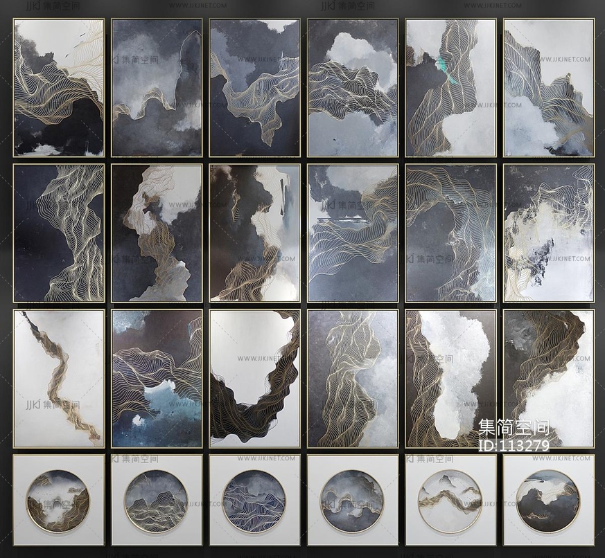 新中式挂画组合 3d模型下载 [模型ID:113279]
