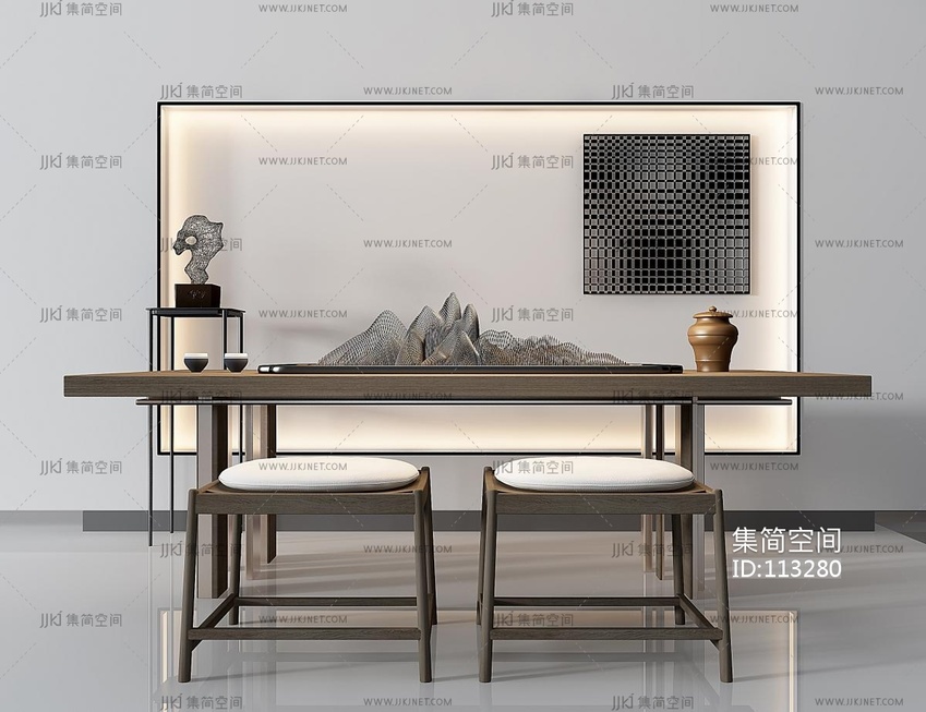 新中式铁艺假山摆件,茶桌椅组合 3d模型下载 [模型ID:113280]