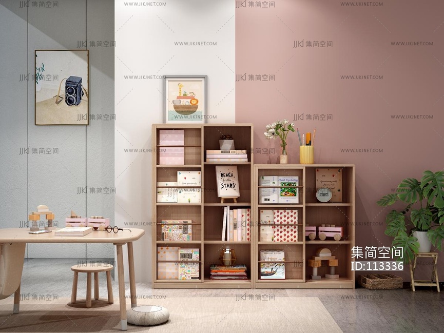 北欧儿童书柜、儿童书桌、眼镜 3d模型下载 [模型ID:113336]