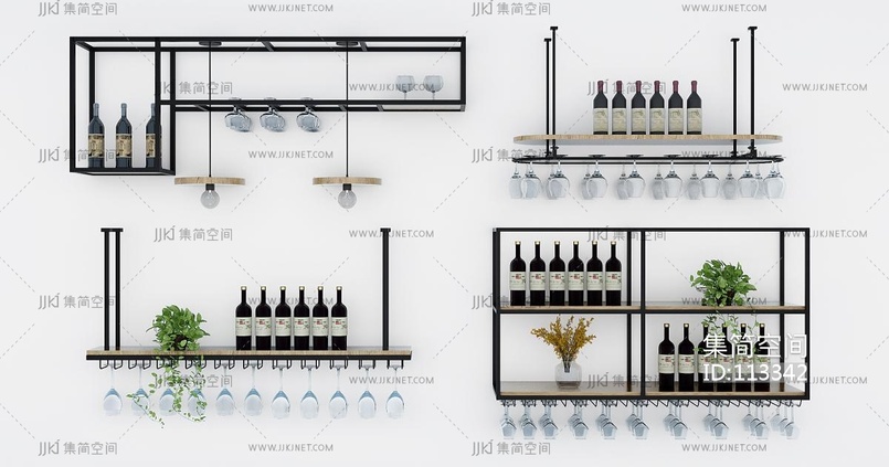 工业风铁艺酒架吊架 3d模型下载 [模型ID:113342]