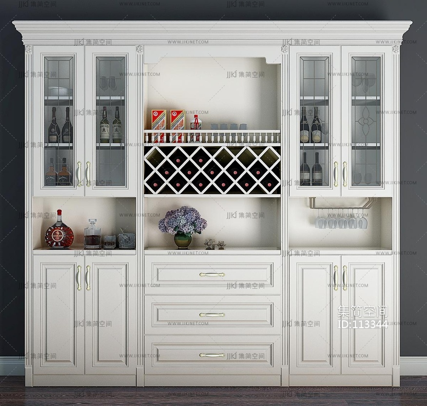 简欧酒柜 3d模型下载 [模型ID:113344]