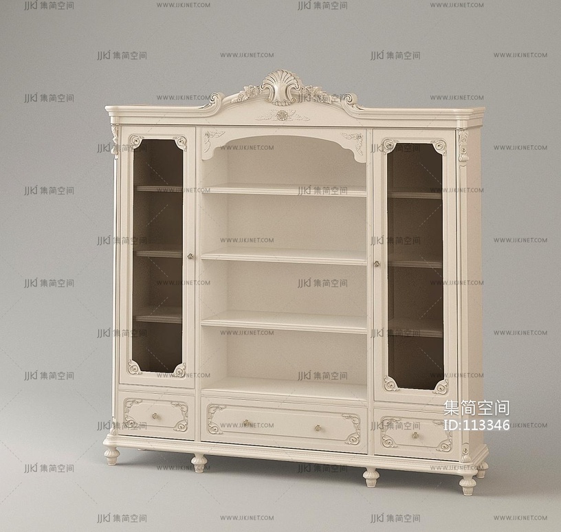 简欧法式书柜 储物柜 3d模型下载 [模型ID:113346]