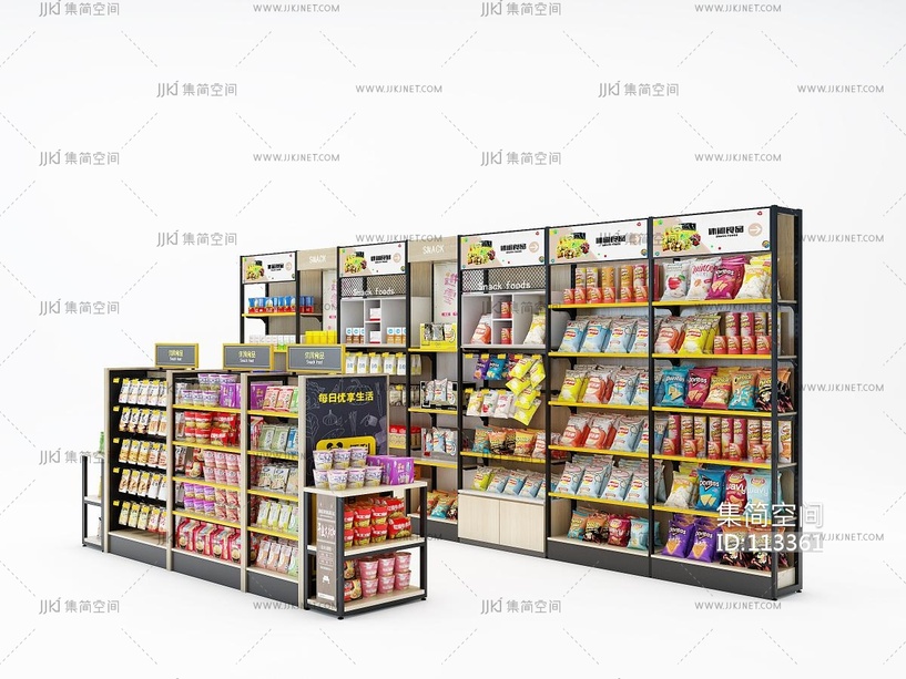 现代超市食品货架,展架 3d模型下载 [模型ID:113361]