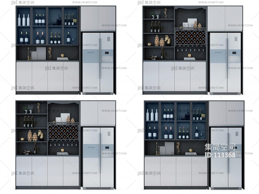 现代酒柜、冰箱、酒瓶 3d模型下载 [模型ID:113368]
