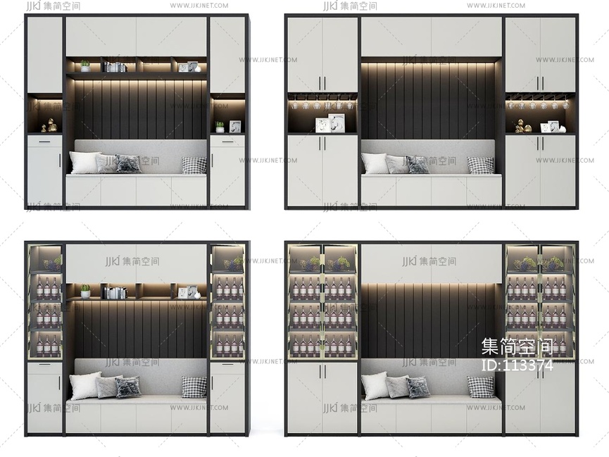 现代卡座酒柜组合 3d模型下载 [模型ID:113374]