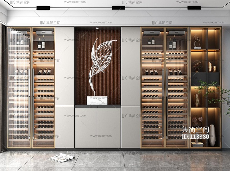 现代轻奢玻璃酒柜边柜 3d模型下载 [模型ID:113380]