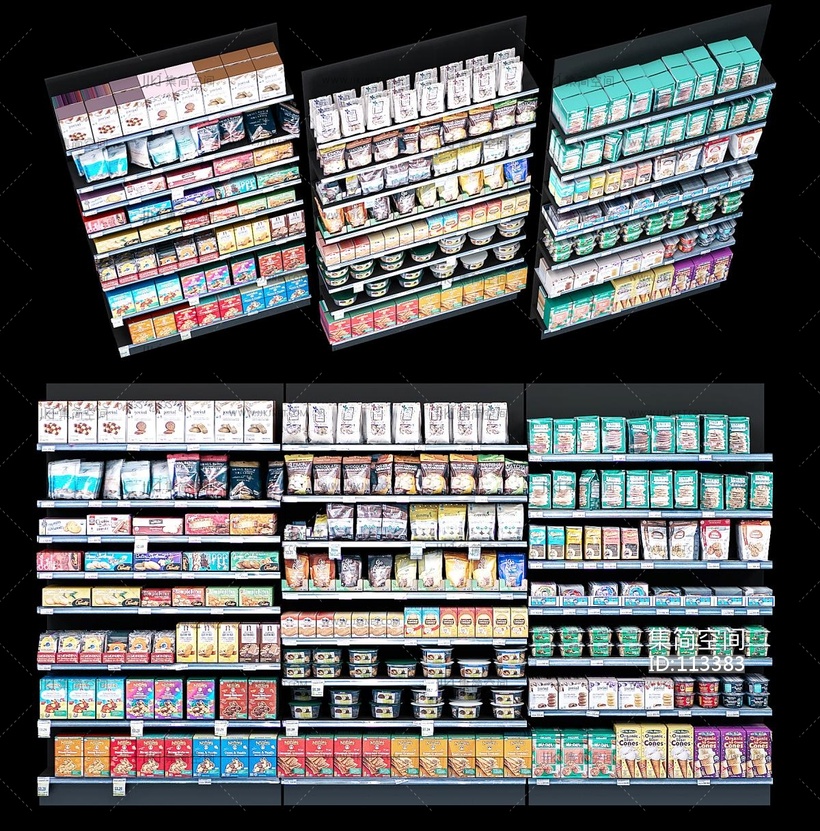现代商场零食货架 3d模型下载 [模型ID:113383]