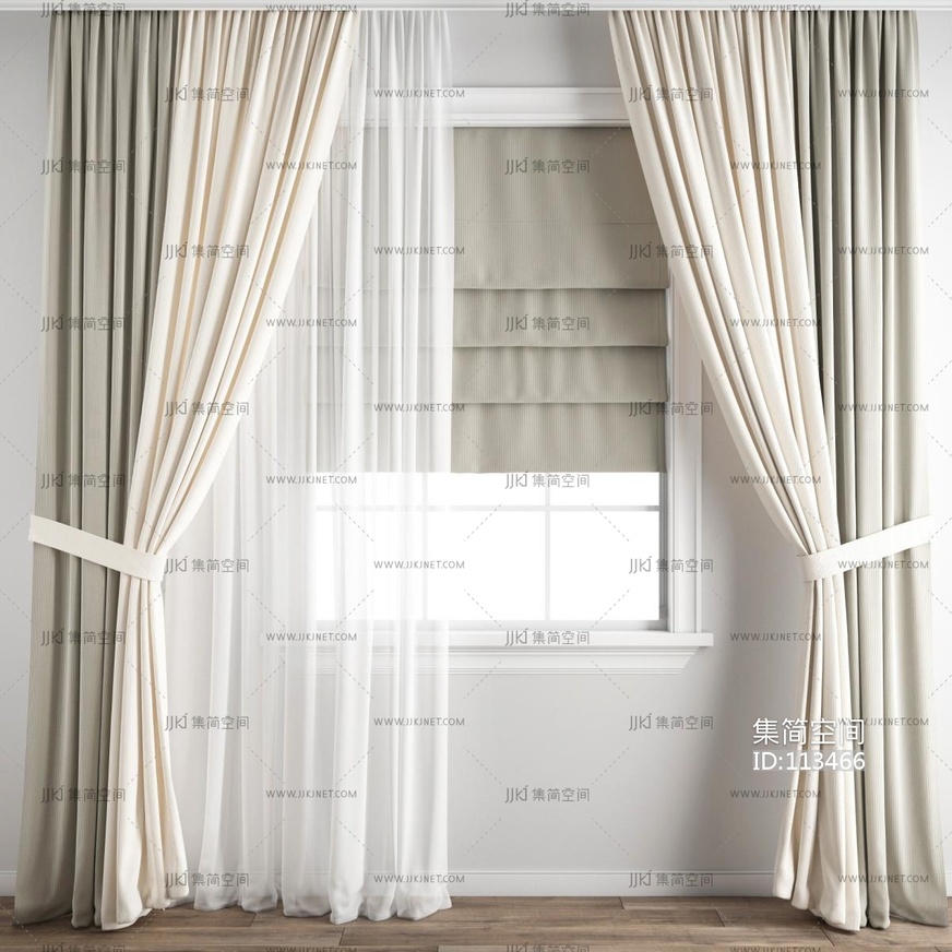 现代通用窗帘_布艺窗帘_纱帘3D模型3d模型下载