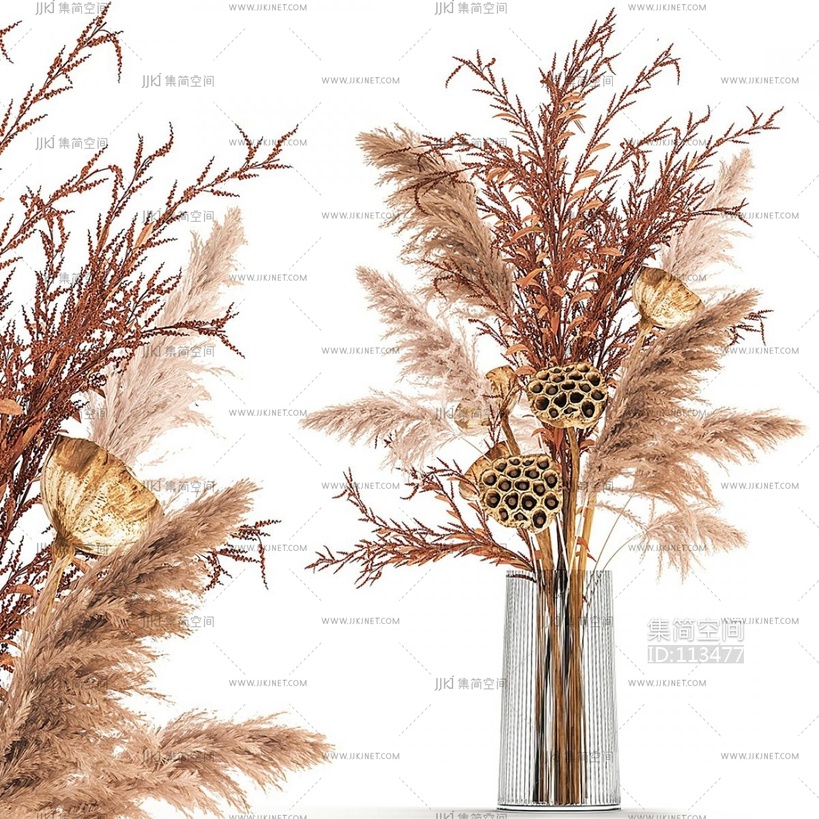 青瓷花盆中的树枝花束,植物插画3D模型cr3d模型下载