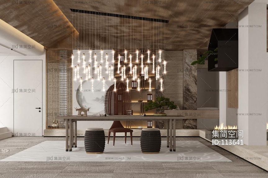 新中式侘寂茶室3D模型3d模型下载