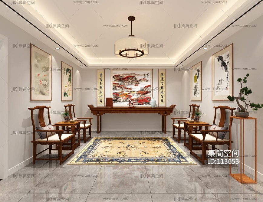中式古典家具玄关_中堂 3d模型下载 [模型ID:113653]