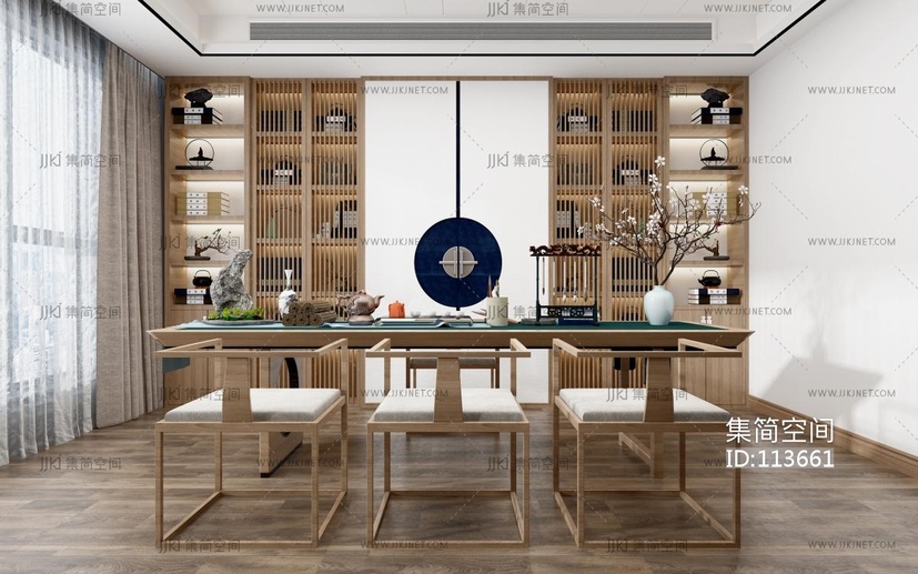 现代书房 书桌椅 壁柜 挂画 吊灯 书 盆栽 摆件3d模型下载