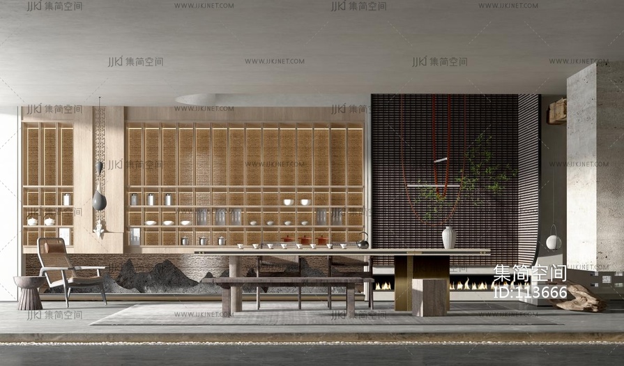 新中式茶室 3d模型下载 [模型ID:113666]