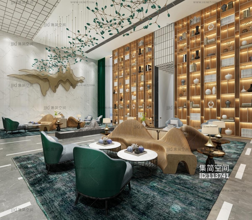 新中式售楼处入口大堂服务太接待台3D模型3d模型下载