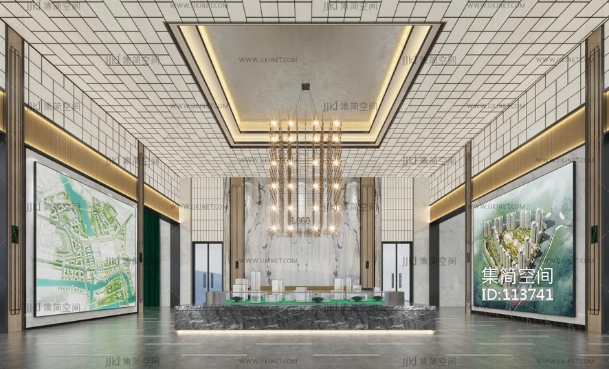 新中式售楼处 3d模型下载 [模型ID:113741]