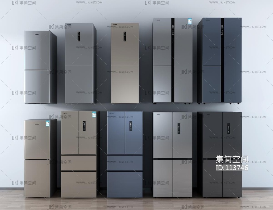 现代智能单开门双开门冰箱 3d模型下载 [模型ID:113746]