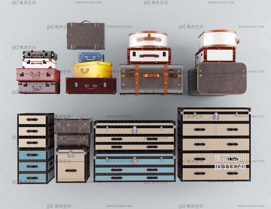 现代美式工业风皮箱箱子装饰箱子 盒子 3d模型下载 [模型ID:113749]