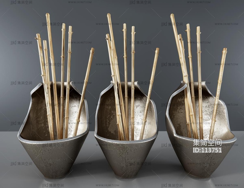 新中式风格瓦罐,罐子竹竿装饰品 摆件 3d模型下载 [模型ID:113751]
